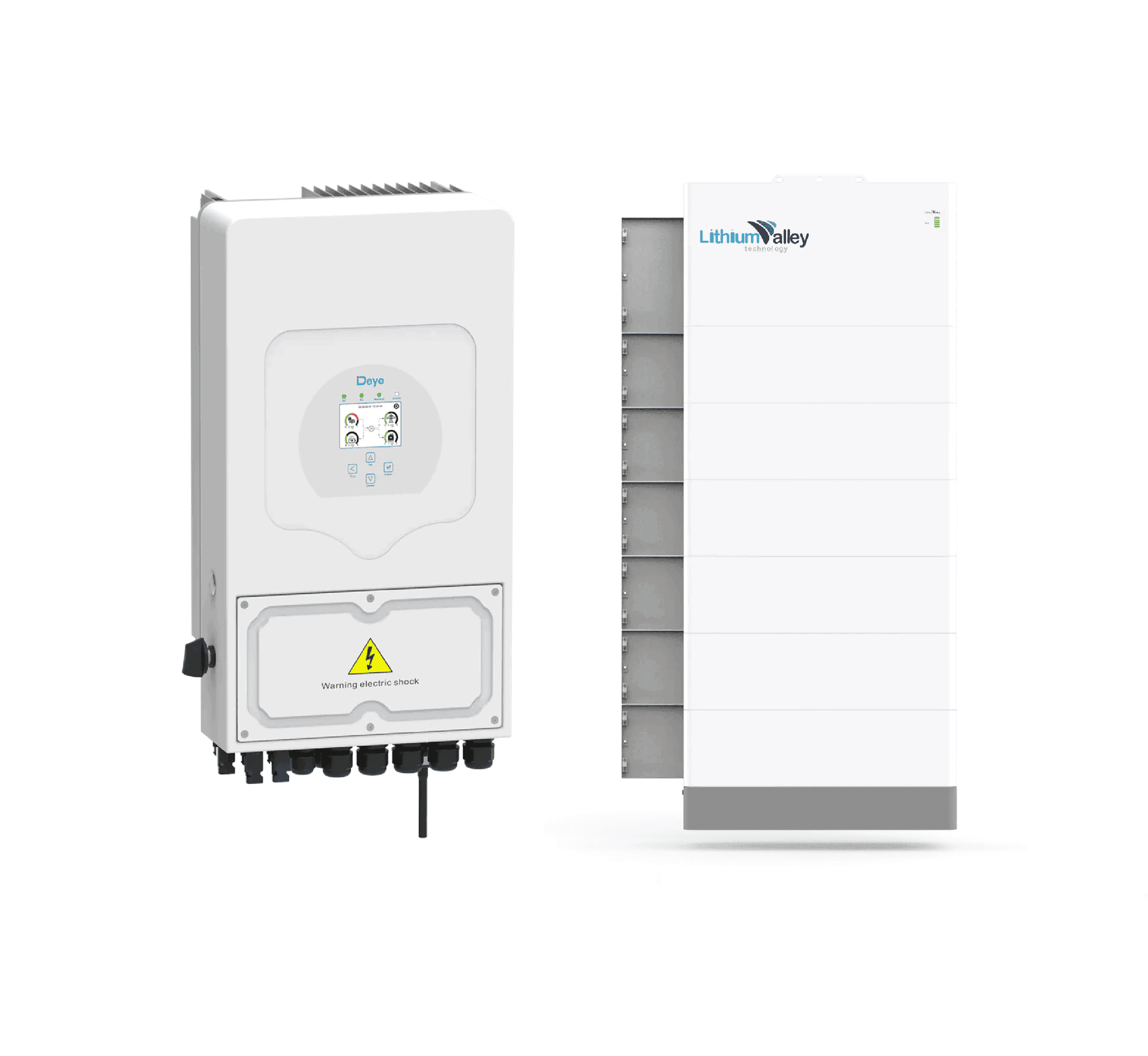 DEYE 5kW Hybrid Inverter 48V – Single Phase (Incl WiFi) and Lithium Valley Wall Mounted LiFePO4 Battery 51.2V 100Ah 5kWh