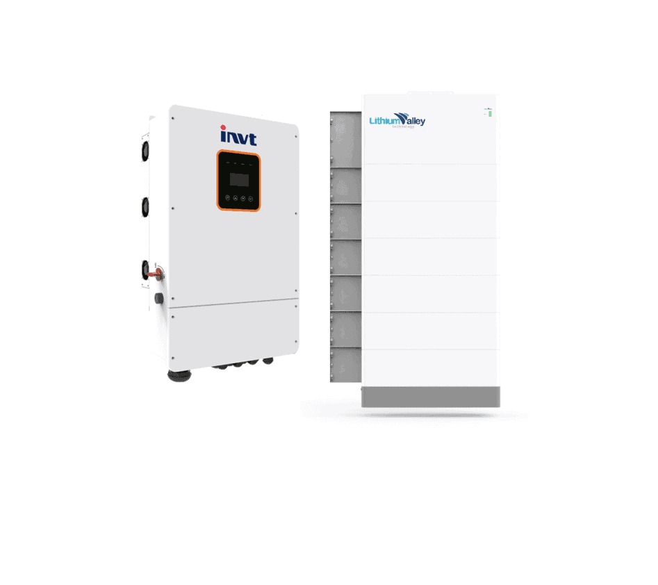 INVT Residential Inverters 8kw Single Phase Hybrid Inverter (Low Voltage) and Lithium Valley 10.24kwh Wall Mount Battery, 51.2V, 200AH